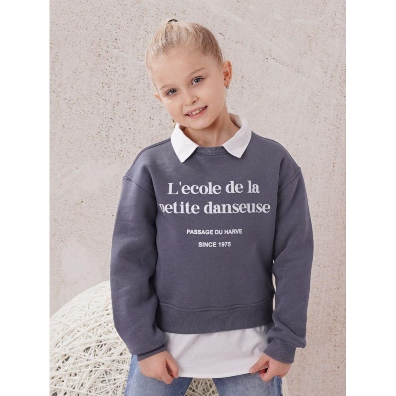 بلوزة بناتي بأكمام طويلة لون رمادي