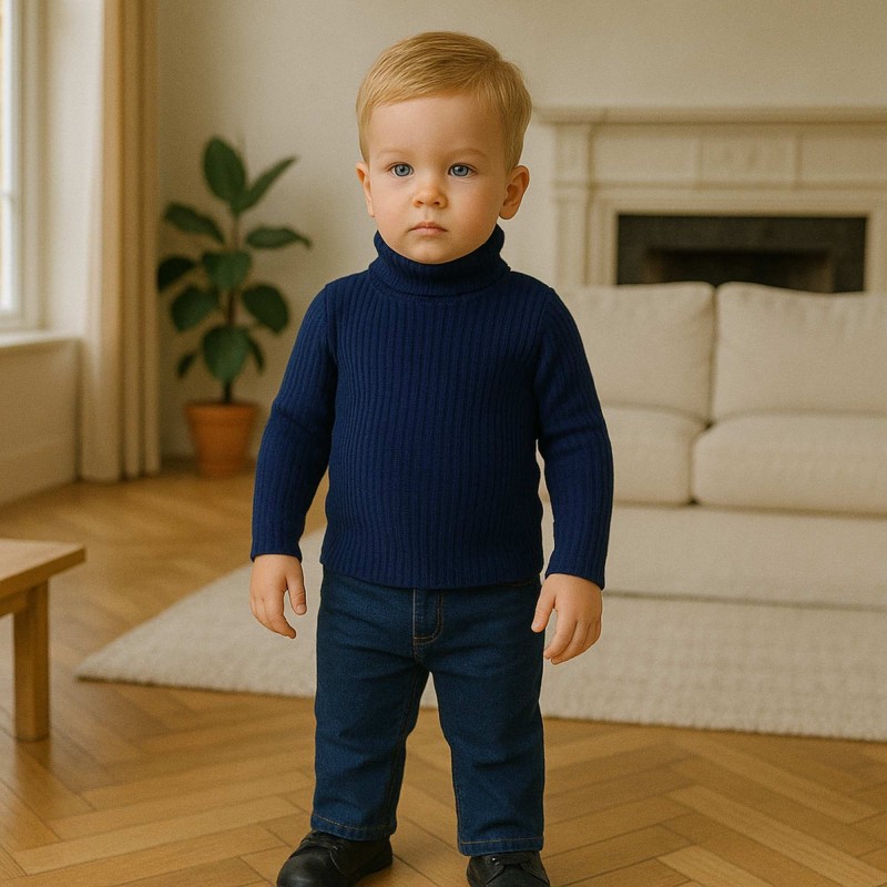 بلوزة صوف قبة عالية للأطفال لون كحلي