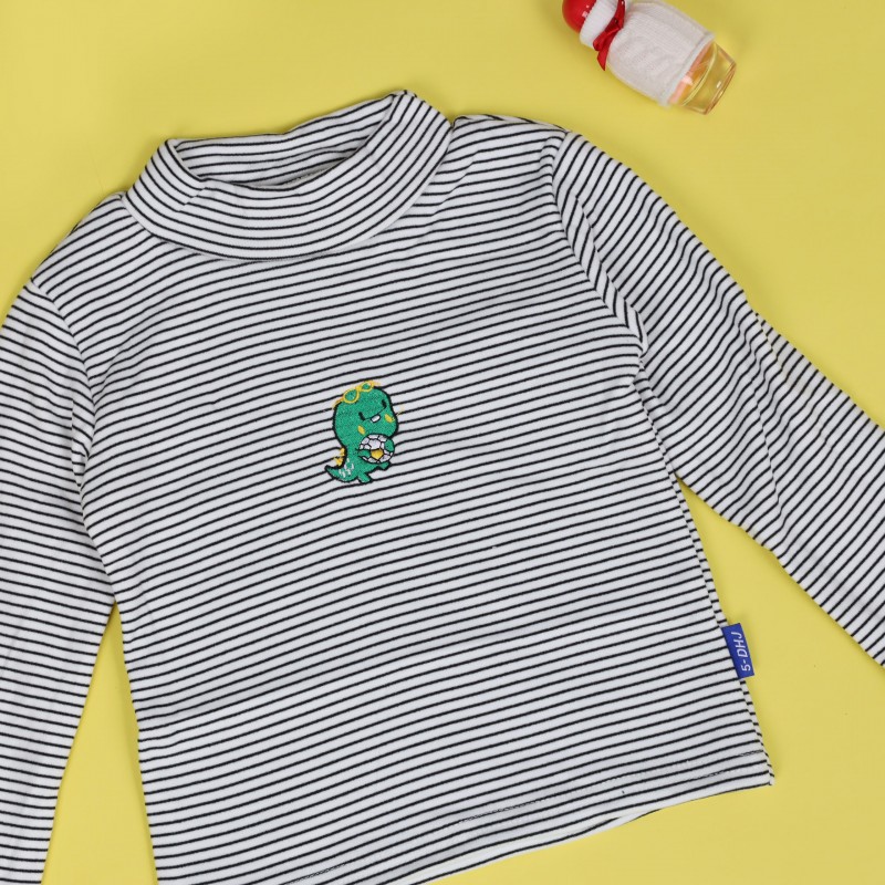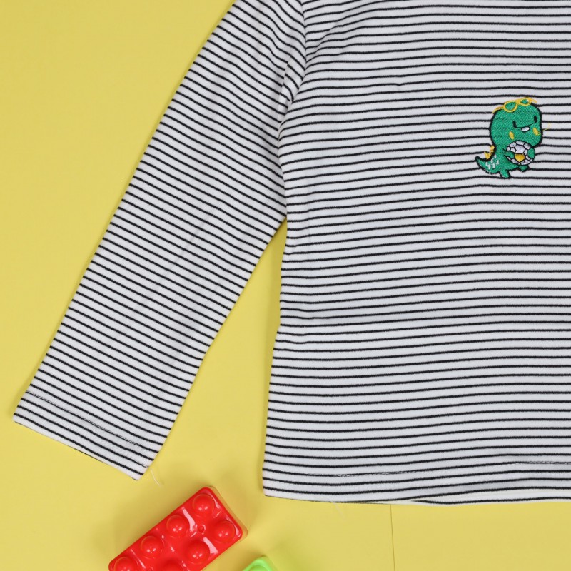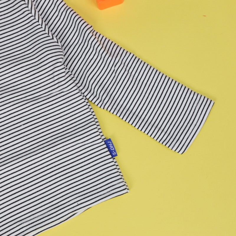 بلوزة بأكمام طويلة للأطفال لون ابيض واسود