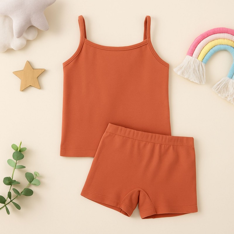 طقم داخلي بناتي قطعتين شباح وبوكسر للأطفال لون كرميدي