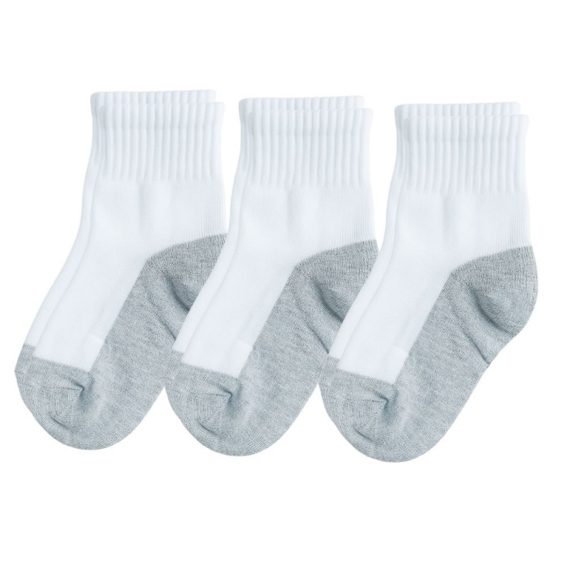 3 أزواج من الجرابات الولادي بلونين أبيض ورمادي، مناسبة لعمر 4–7 سنوات. خامة ناعمة ومريحة تحافظ على قدم الطفل جافة ومحمية طوال اليوم.