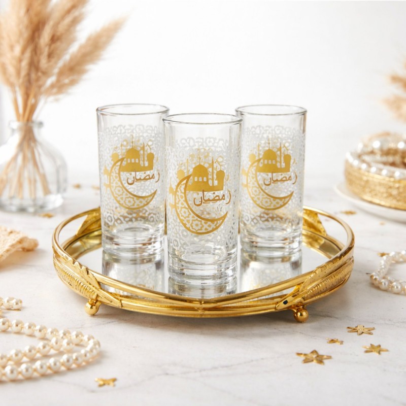 لمسة ذهبية في كل رشفة! مع طقم 6 كاسات رمضان ماء / عصير لون ذهبي، سيكون لديك الخيار المثالي لتقديم مشروباتك بأناقة وذوق رفيع في شهر رمضان أو أي مناسبة خاصة