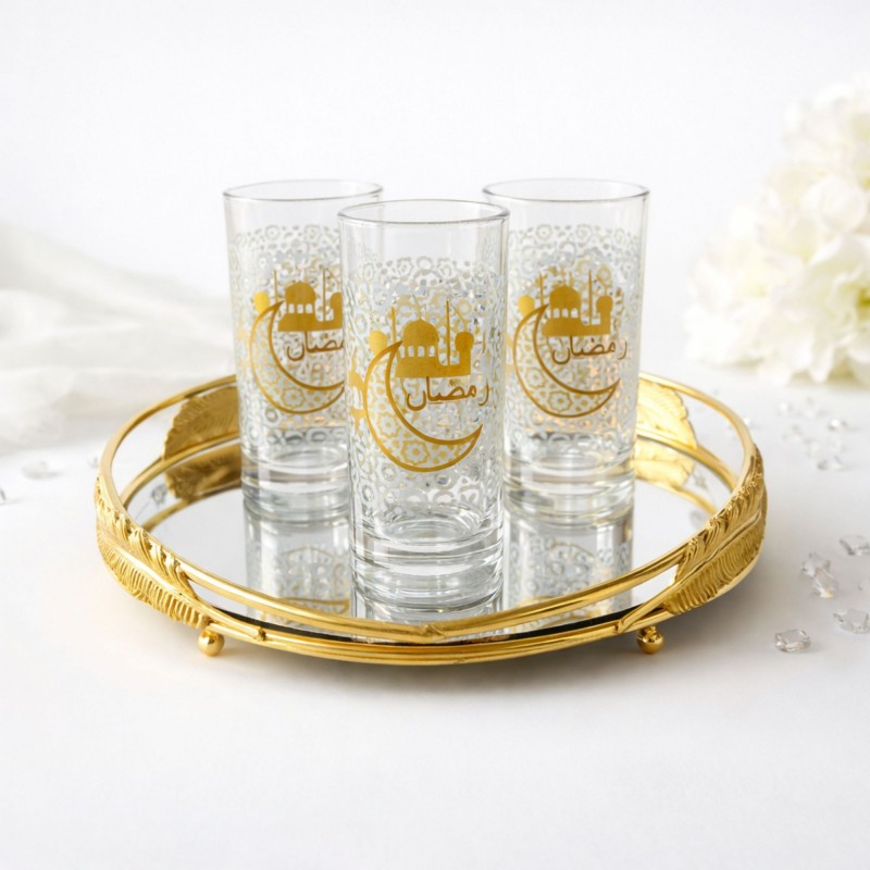 استمتع بأجواء رمضان المبارك مع طقم 6 كاسات رمضان ماء / عصير لون ذهبي، الذي يجمع بين الفخامة والتصميم الراقي. مصممة خصيصًا لإضافة لمسة من الأناقة على موائد الإفطار والسحور، هذه الكاسات تقدم لك تجربة مميزة سواء كنت تقدم الماء المنعش أو العصائر الطبيعية اللذيذة. اللمسة الذهبية الفاخرة تضفي جمالًا خاصًا يعكس روح الاحتفالات والتميز.