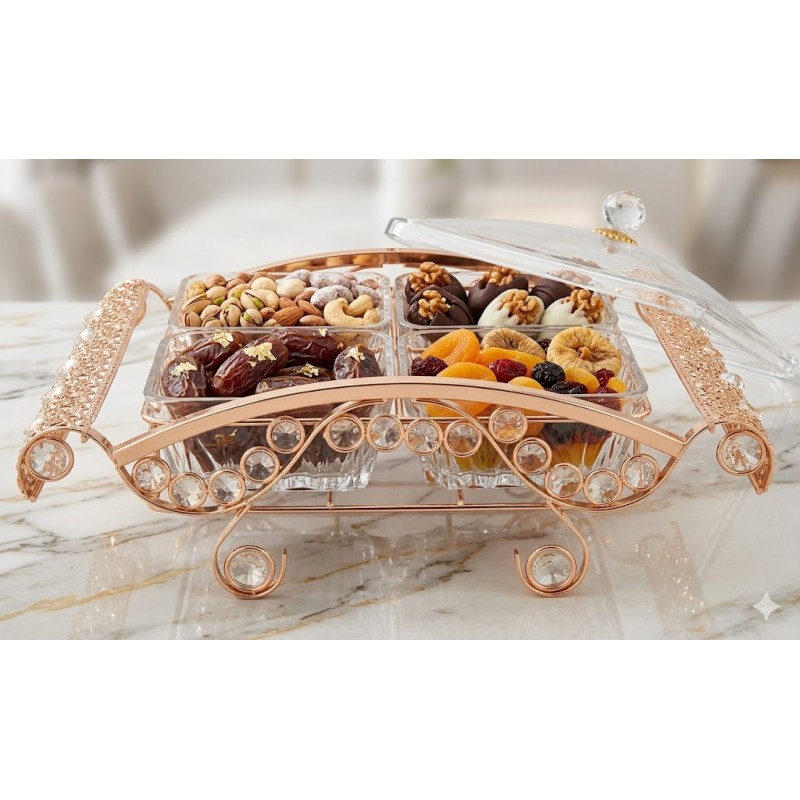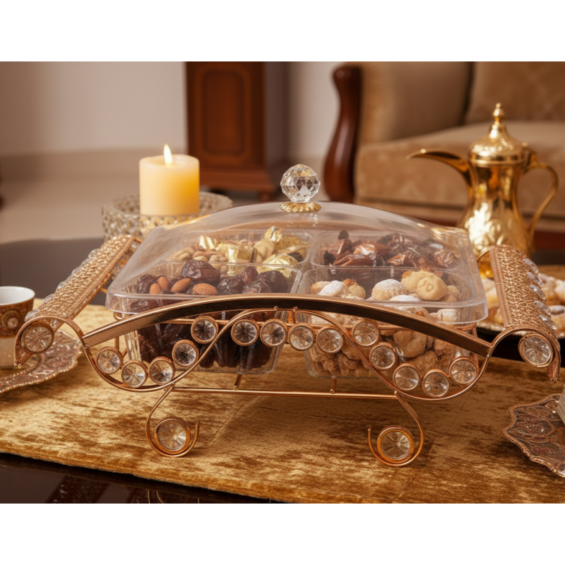 باختيارك مضيفة ذهبية مقطعة، ستحصل على قطعة تجمع بين الجمال والوظيفة، وتضفي لمسة من الفخامة على ضيافتك، مما يعكس ذوقك الرفيع واهتمامك بالتفاصيل.
