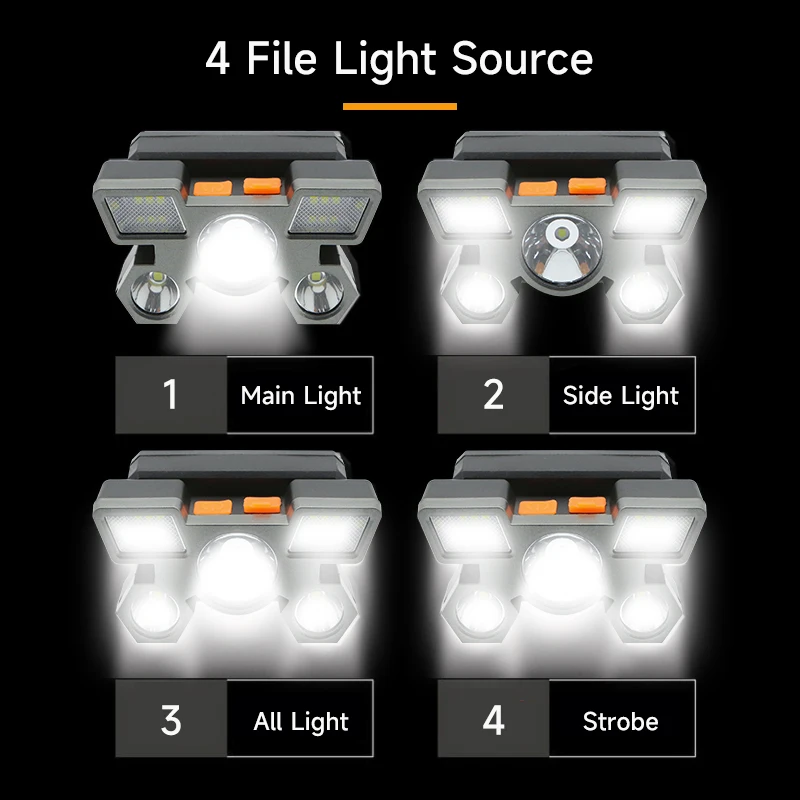 مصباح رأس كشاف ذات 5 مصابيح LED - ضوء قوي وضد رذاذ الماء - مستويين إضاءة - بطارية مدمجة - مناسب أثناء العمل بالليل والتخييم
