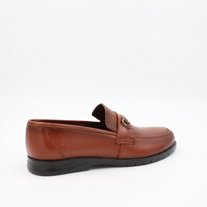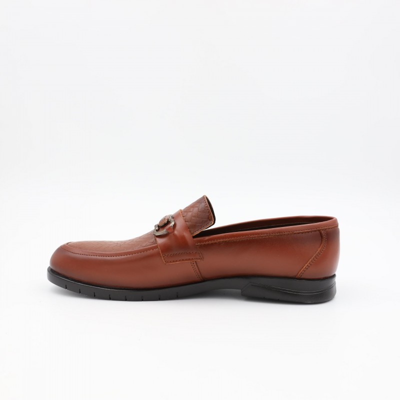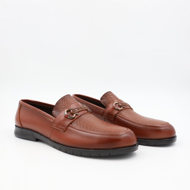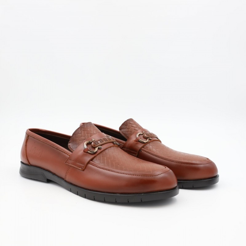 حذاء رجالي رسمي بلون عسلي مصنوع من جلد طبيعي فاخر، بتصميم Loafer بدون رباط لسهولة اللبس، مزين بإبزيم معدني أنيق يضيف لمسة تميّز على كل خطوة.