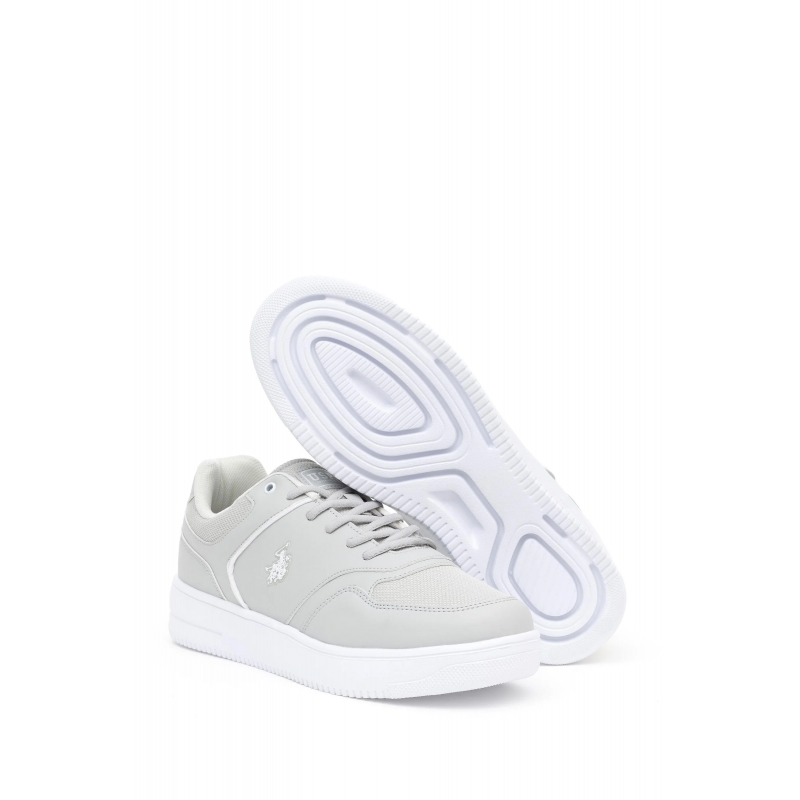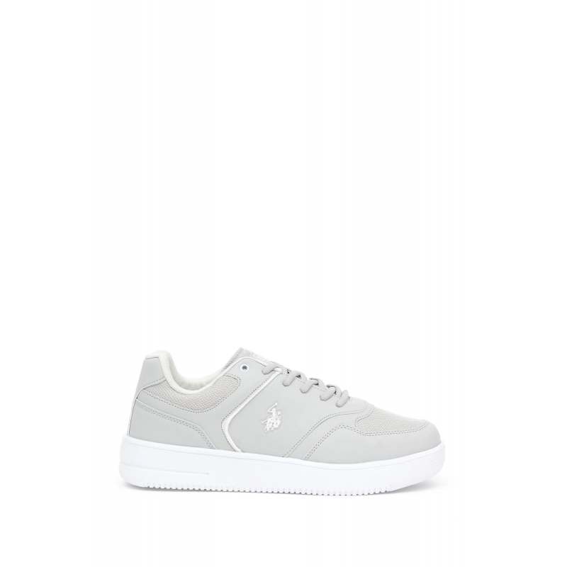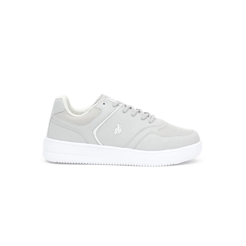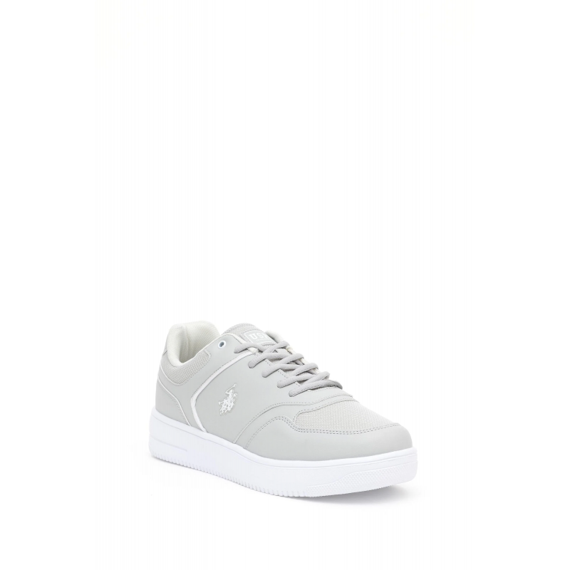 حذاء يو اس بولو جلد للرجال لون رمادي ونعل أبيض