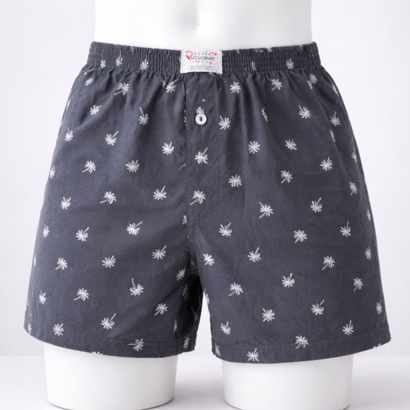 بوكسر رجال قطني بتصميم شجرة النخيل لون رمادي
