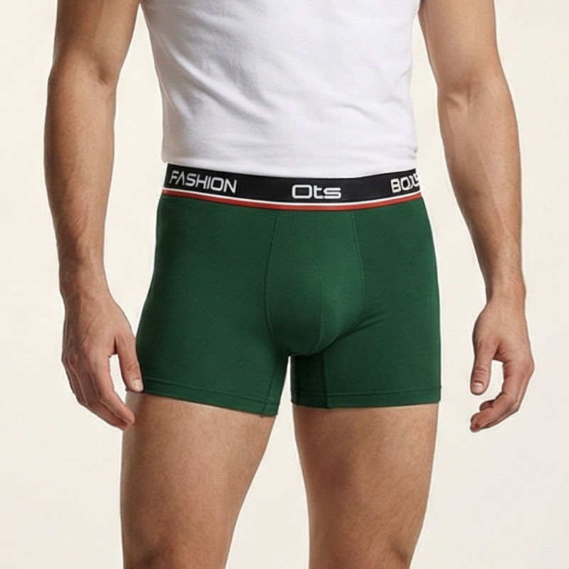 بوكسر رجالي طويل بلون سادة من OTS، خامة قطنية ناعمة مع مرونة مثالية، بيوفّر تغطية كاملة وثبات بدون أي انزعاج. تصميم عملي يناسب الاستخدام اليومي أو الرياضي.