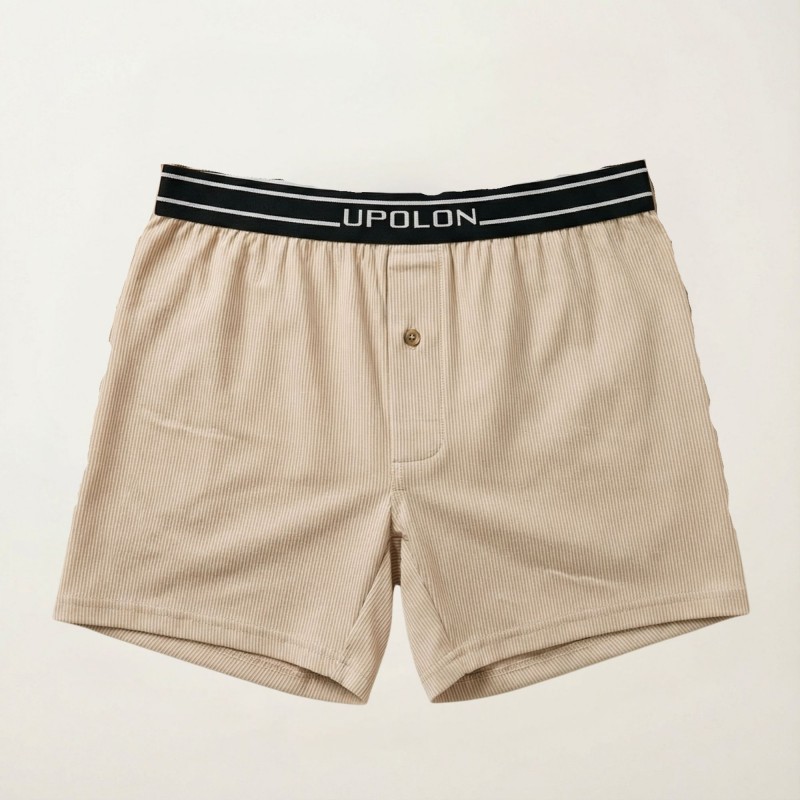بوكسر بتصميم زر مخطط طولي للرجال لون بيج