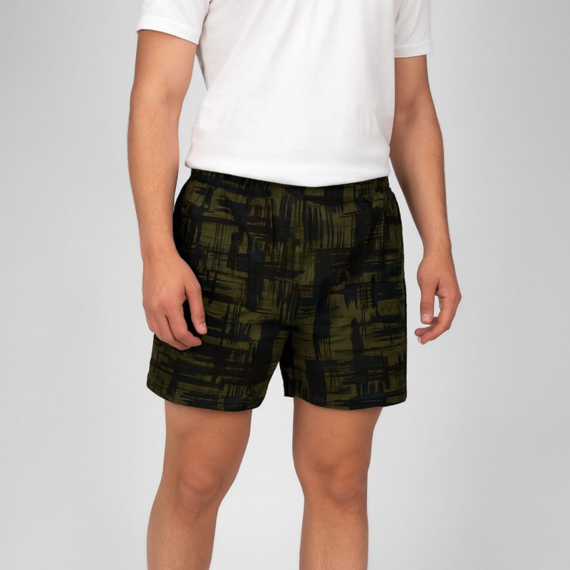 بوكسر رجال قطني لون زيتي بأشكال أسود