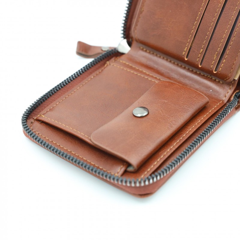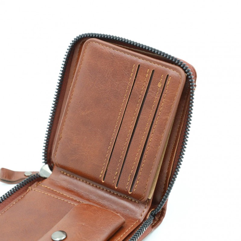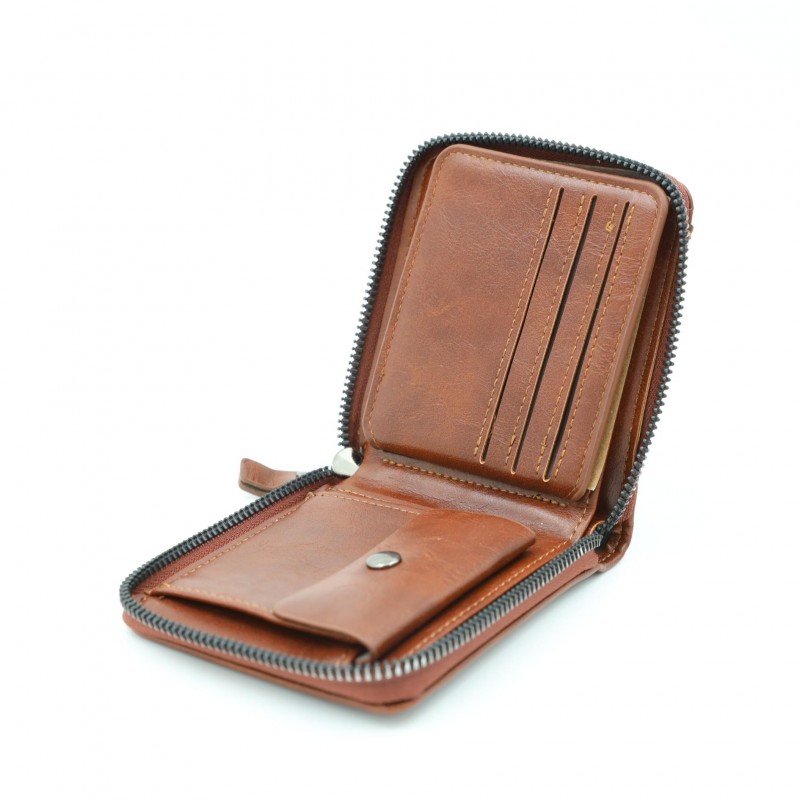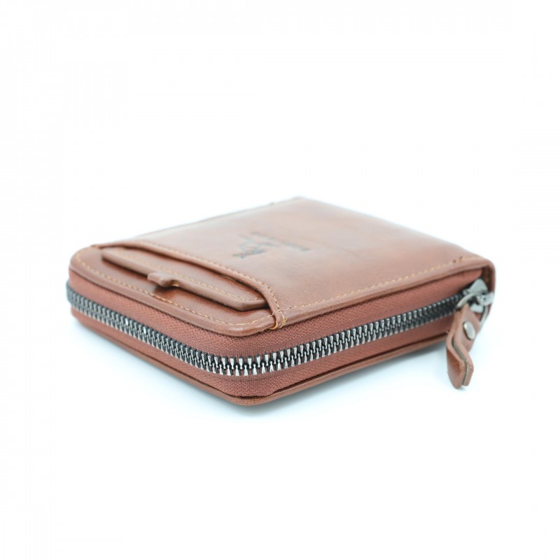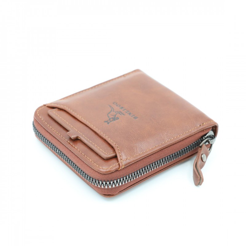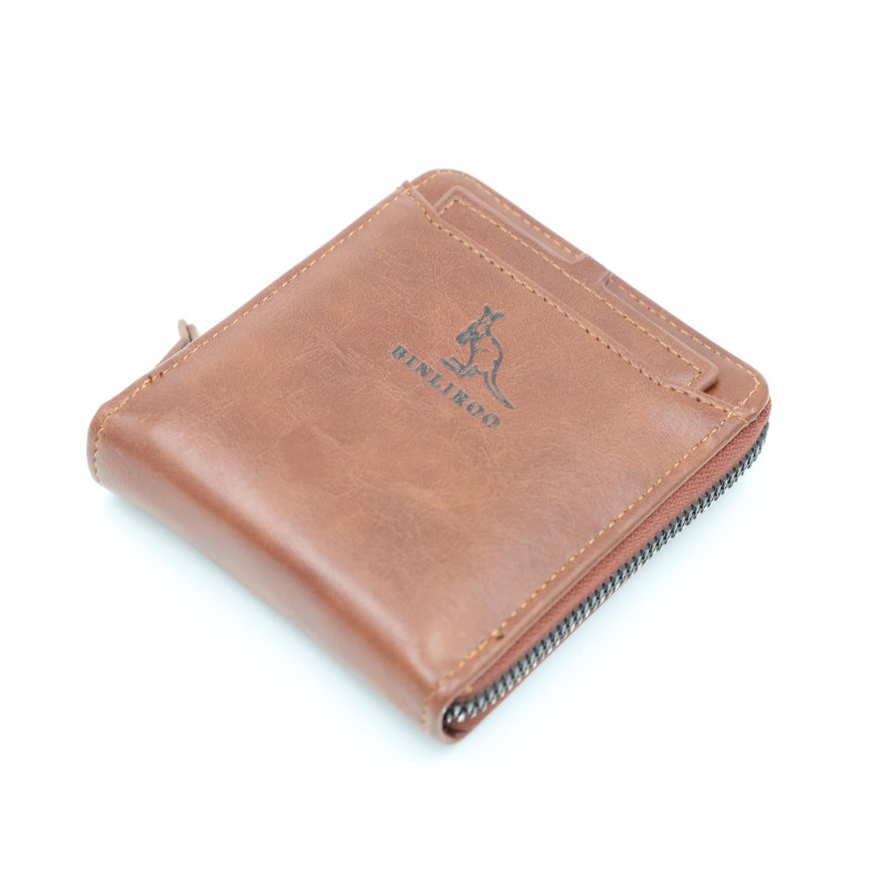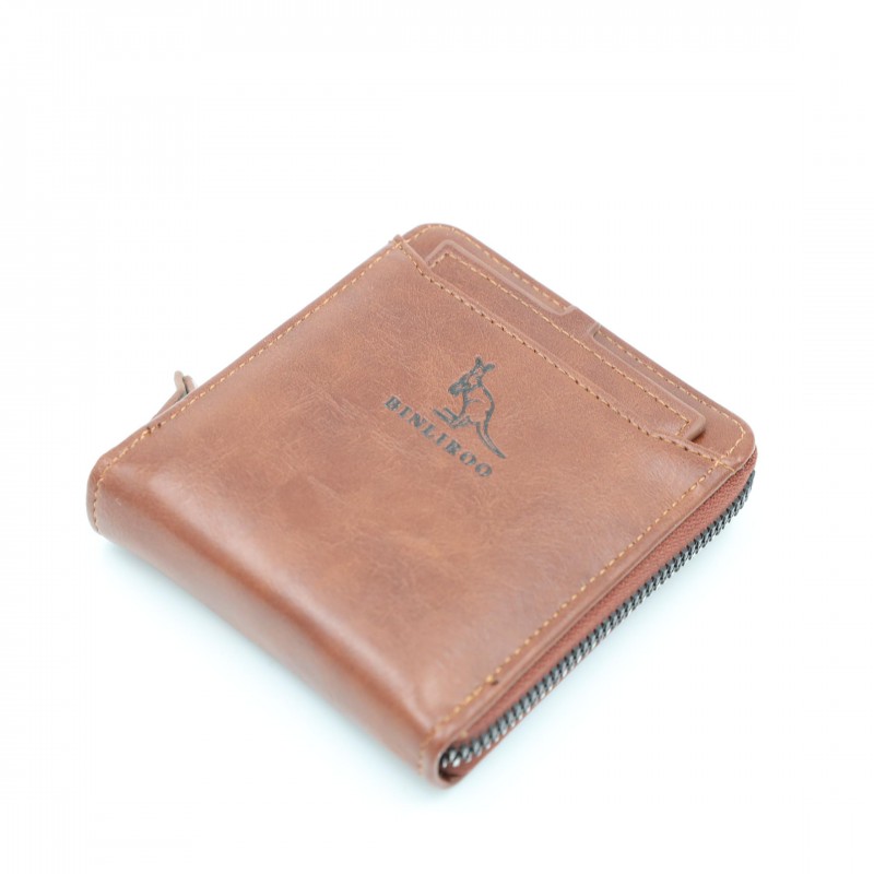 محفظة رجالية أنيقة بلون بني فاتح، مصنوعة من جلد عالي الجودة بتشطيب ناعم ولمسة كلاسيكية. تصميمها العملي يجعلها مناسبة للاستخدام اليومي مع حجم مثالي يسهل حمله في الجيب دون إزعاج.