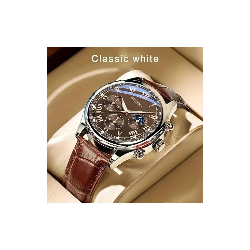 ساعة كوارتز فاخرة للرجال من Geneva حزام جلد لون بني