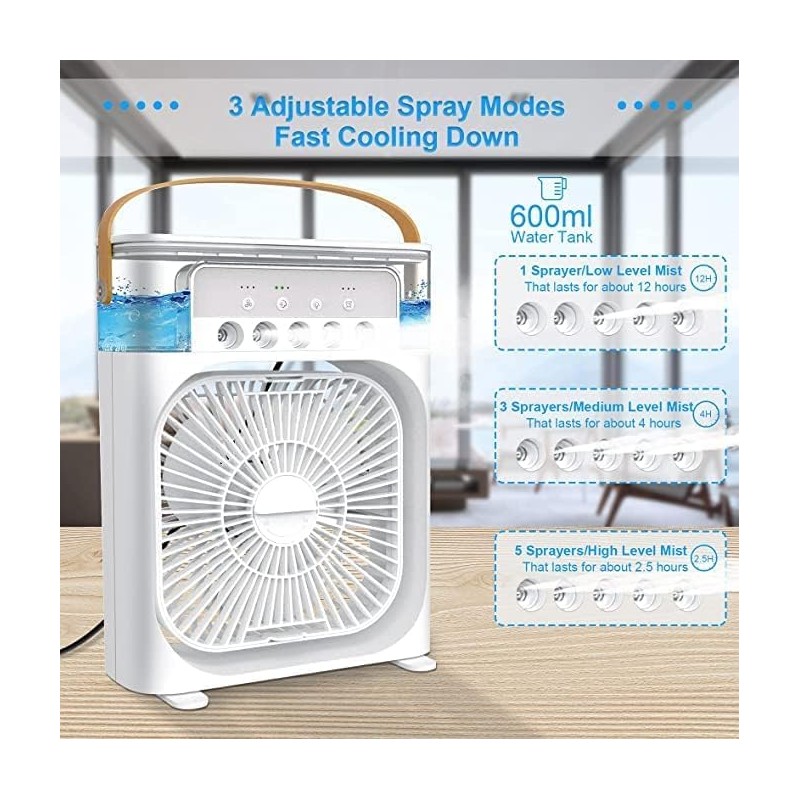 ✅يمكن لمبرد الهواء المحمول هذا إطلاق رذاذ الماء من خلال الثقوب الموجودة فيه والتي يمكن أن تخفض درجة الحرارة بسرعة وفعالية.