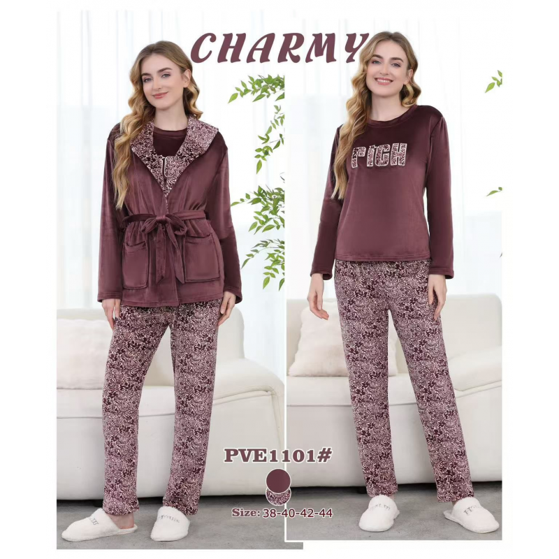 بجامة مخمل بأزرار من CHARMY للنساء لون بني فاتح