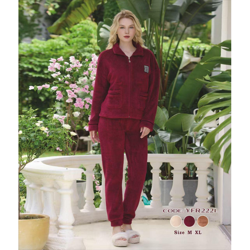 بجامة فرو نسائية بسحاب لون خمري