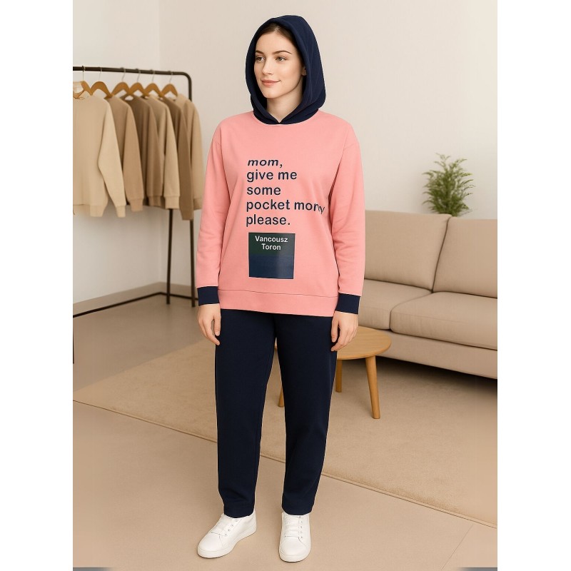 بجامة نسائية مُكونة من قطعتين (بلوزة بأكمام طويلة وطاقية، مع بنطلون).