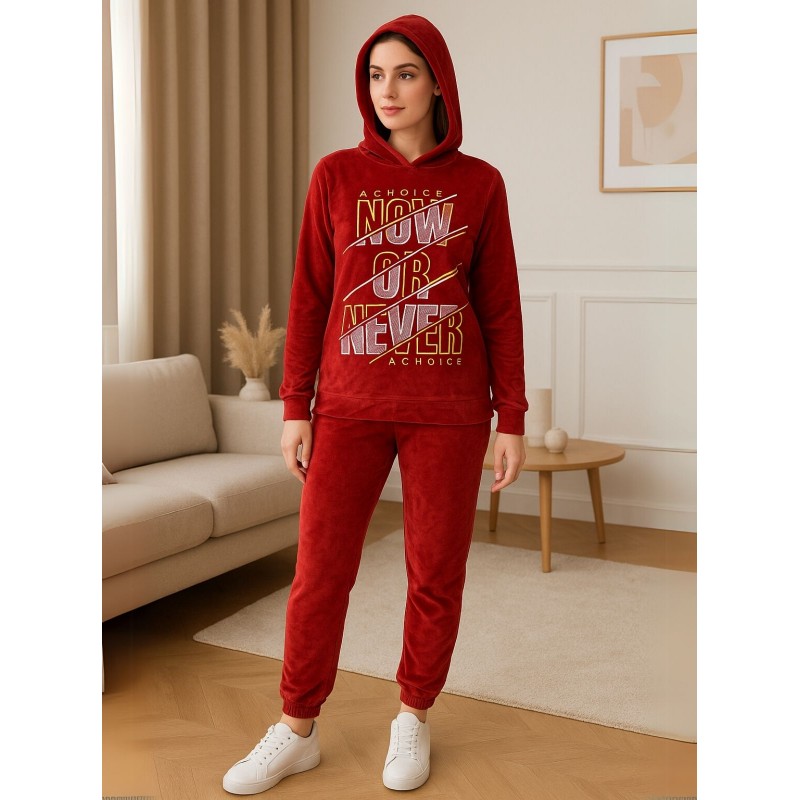 استمتعي بأقصى درجات الراحة والأناقة مع هذه البجامة النسائية المكونة من قطعتين. تصميمها العصري باللون الأحمر يمنحك مظهراً جذاباً بينما يوفر لكِ الراحة التامة للاسترخاء في المنزل.