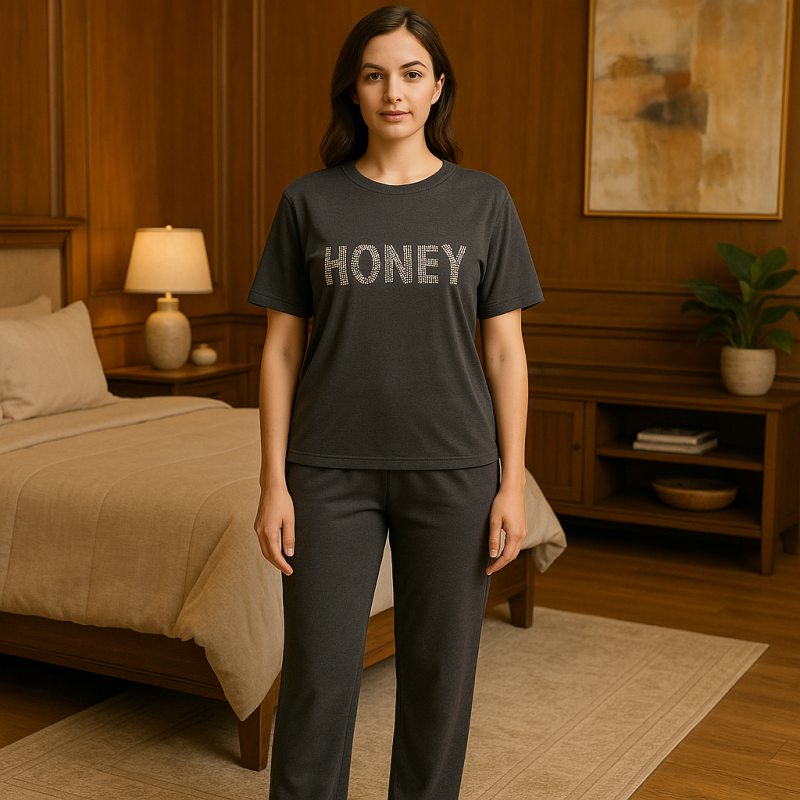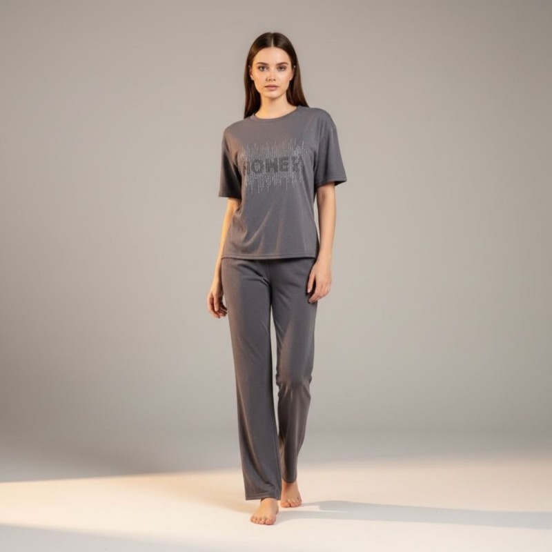 بجامة نص كم للنساء لون سكني غامق