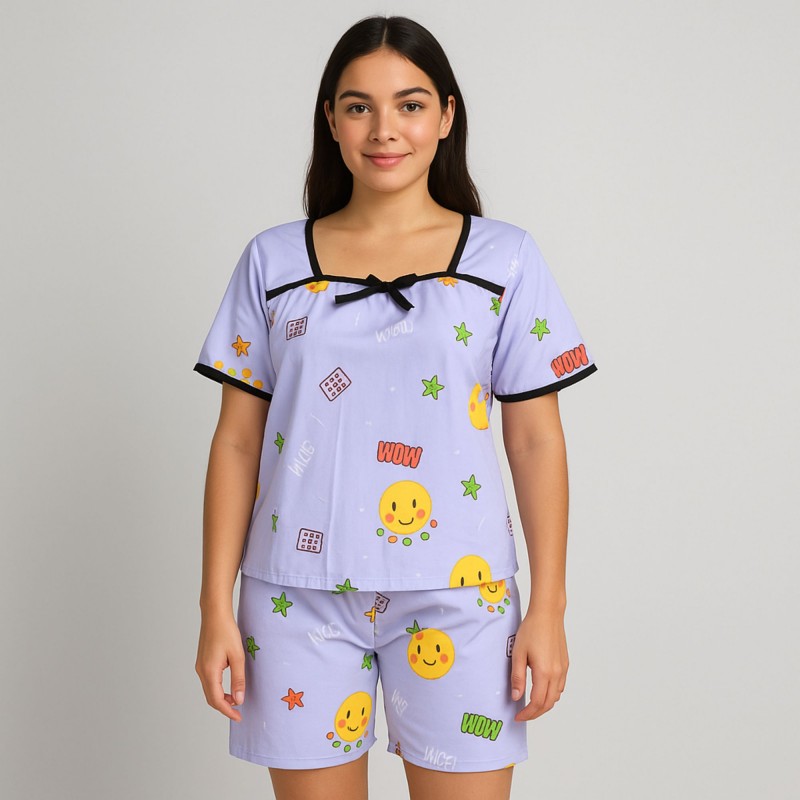 بيجامة صيفية بيتية شورت وبلوزة للنساء لون بنفسجي فاتح one Size