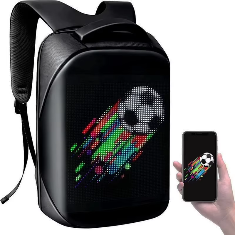 حقيبة ظهر LED: حقيبة ظهر للكمبيوتر المحمول عالية الجودة مع شاشة LED كاملة الألوان يمكنها عرض الصور النصية والرسوم المتحركة المفضلة لديك ديناميكيًا.