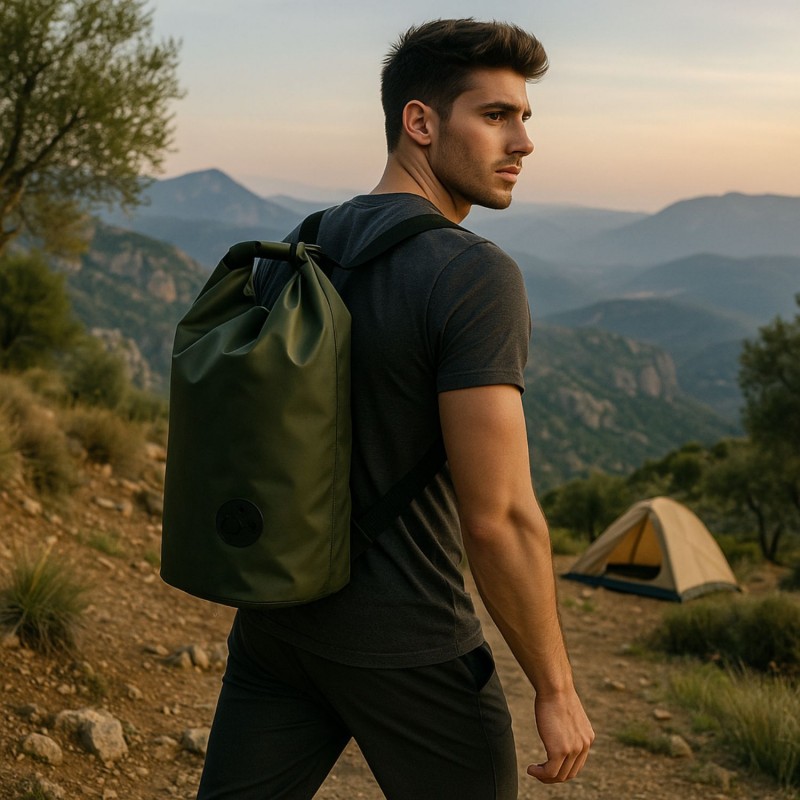 حقيبة ظهر للرحلات والتدريبات الرياضية أنيقة وسهلة الاستخدام مع ربطة لإغلاقها يتم تنظيفها بفوطة مبللة الحجم: 20 لتر - 100% بولييستر اللون: أخضر