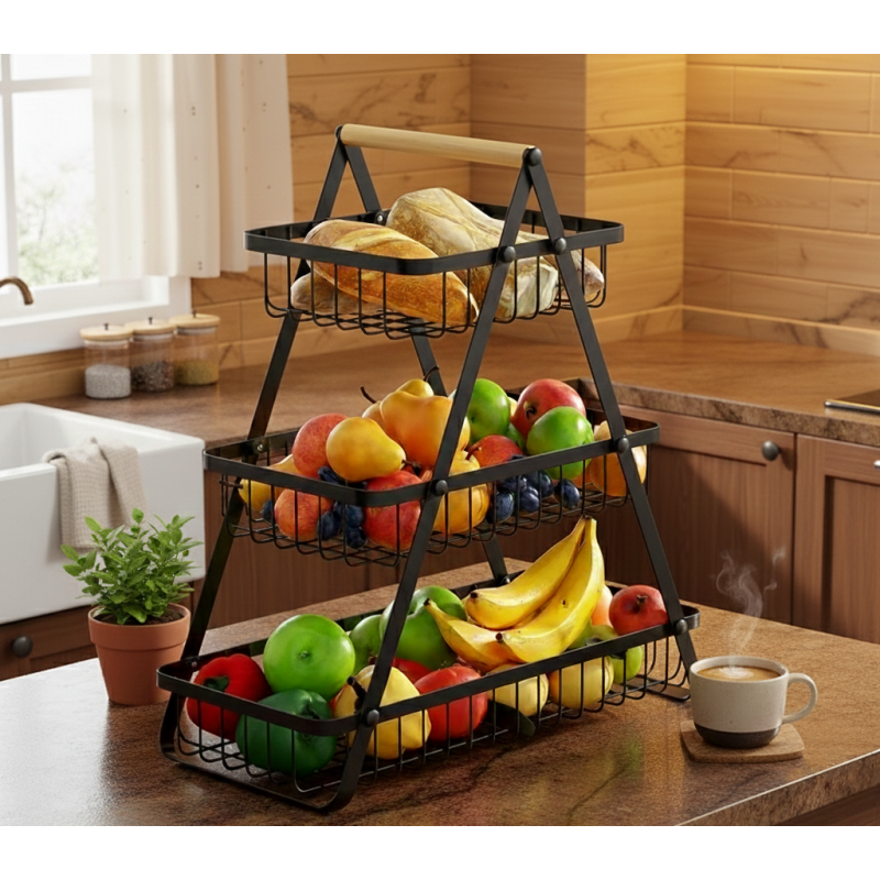 ✅سلة لسطح الطاولة من 3 طبقات السلة مثالية لحمل كل من الفواكه والخضروات، والحفاظ على مساحتك منظمة، ولا تشغل مساحة كبيرة على سطح الطاولة.
