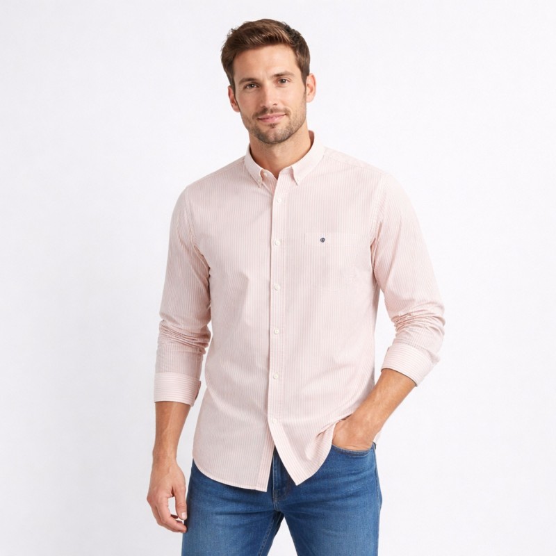 قميص رجالي قطني مخطط ابيض واصفر