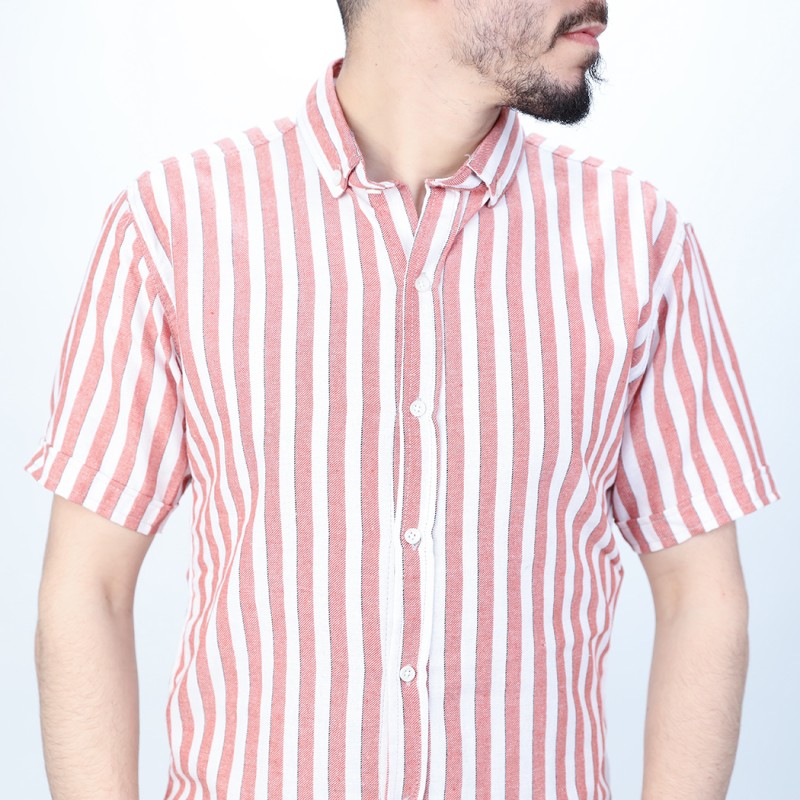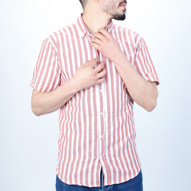 قميص نص كم سلم فت قبة صينية مقلم خامة قطنية - صناعة تركية | غسل درجة حرارة 30 او قل | 100% COTTON | BayEfendi