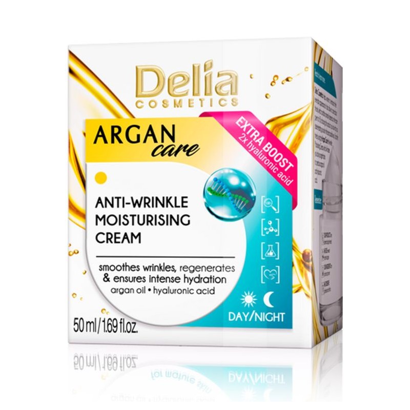 كريم مكافحة التجاعيد المرطب للنهار والليل يقلل التجاعيد ويجدد ويضمن الترطيب المكثف مع زيت الارجان وحمض الهايدروليك لجميع أنواع البشرة الناضجة ، طريقة الاستخدام : قومي كل صباح او مساء بوضع الكريم على الوجه والرقبة بعد التنظيف . الكريم مثالي للاستخدام اسفل المكياج