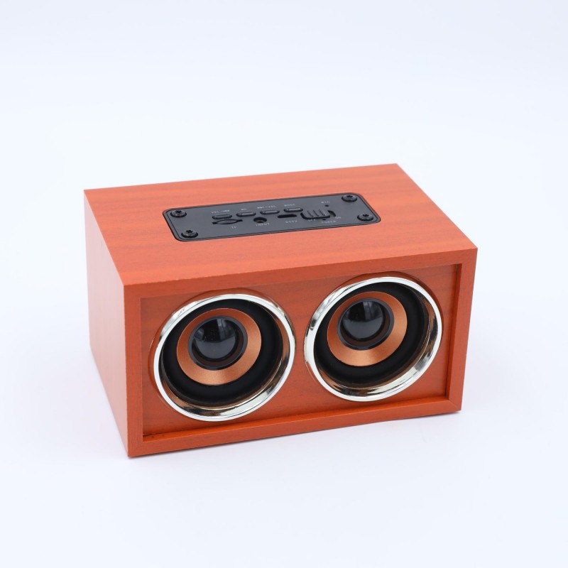 سماعة بلوتوث أنيقة بتصميم خشبي جذاب تجمع بين الشكل الكلاسيكي والأداء العملي. مزودة بمكبرَي صوت أماميين يقدمان صوتًا واضحًا ومتوازنًا، مناسبة للاستماع اليومي في المنزل أو المكتب. تصميمها المدمج يجعلها سهلة الحمل والاستخدام، مع أزرار تحكم علوية لتشغيل الموسيقى وضبط الصوت بكل سهولة.