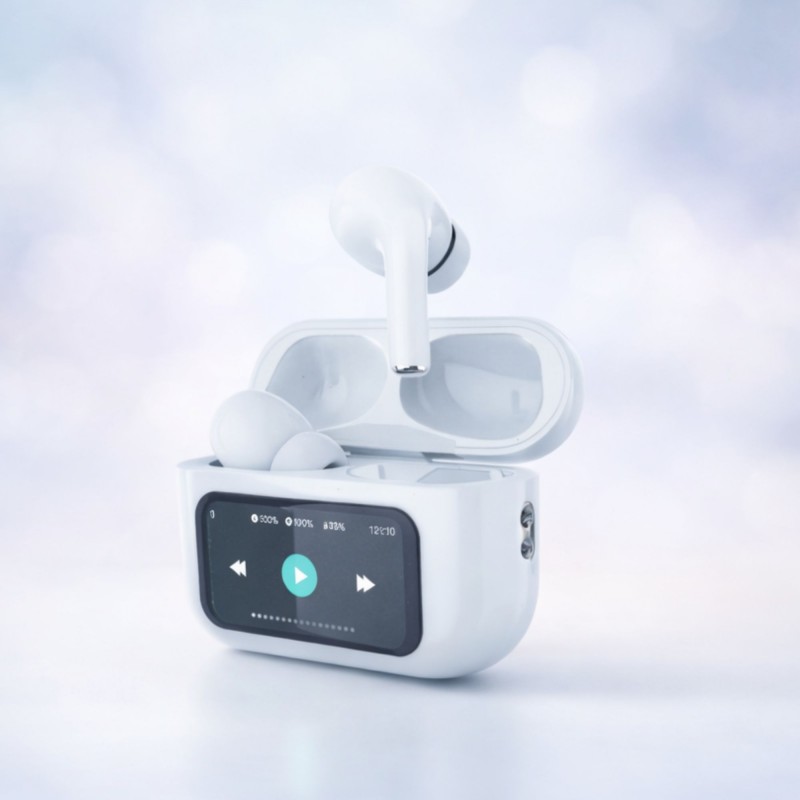 9Pro TWS Earphones -White-ايربودز مع شاشة لمس ع علبة الشحن