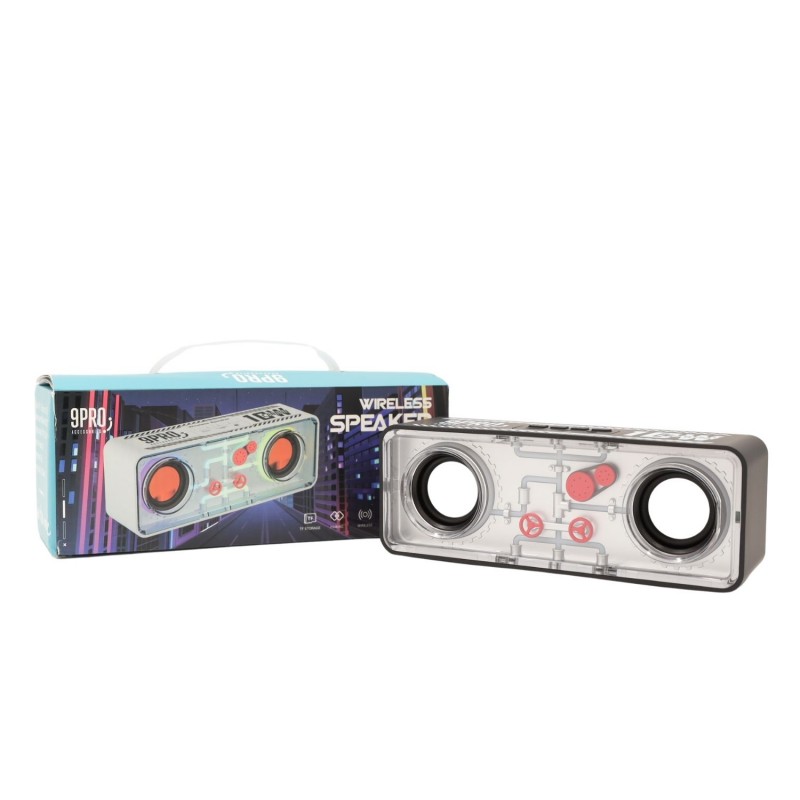 سماعة بلوتوث محمولة بتصميم عصري وقوي، تعطي صوتًا واضحًا مع Bass جيد، مناسبة للاستخدام اليومي في البيت أو الرحلات. تصميمها اللافت مع الإضاءة يجعلها خيارًا ممتازًا لمحبي الموسيقى.