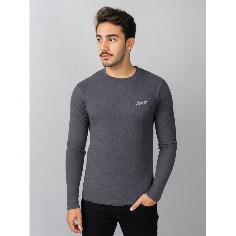 بلوزة بأكمام طويلة للرجال لون رمادي غامق