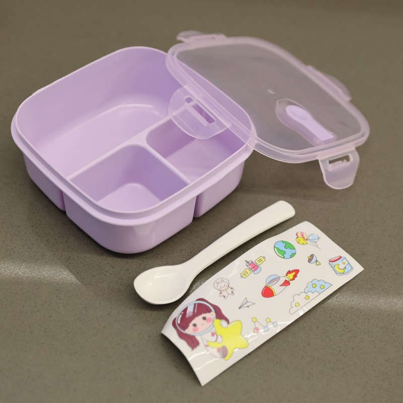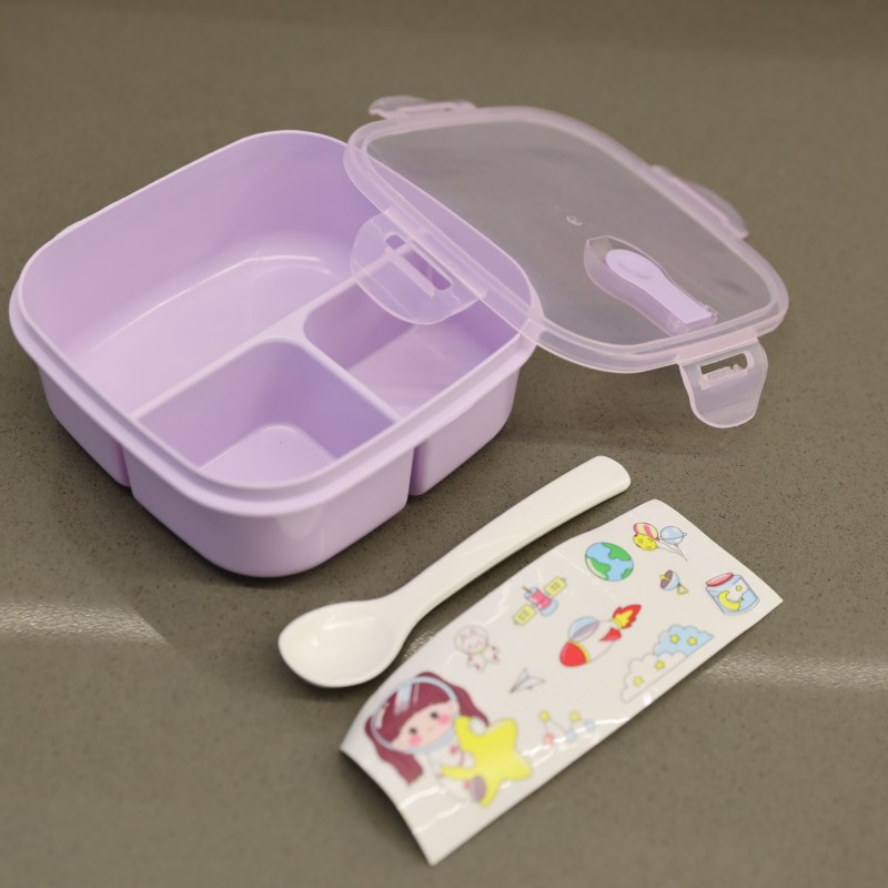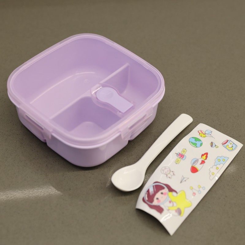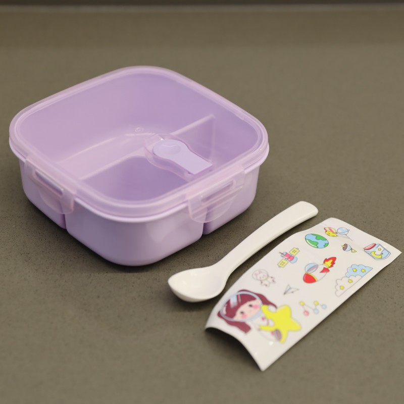 ✅ التصميم: تصميم مربع بحجم 14.5*14.5 سم مع ملعقة مدمجة لتناول الطعام بسهولة.