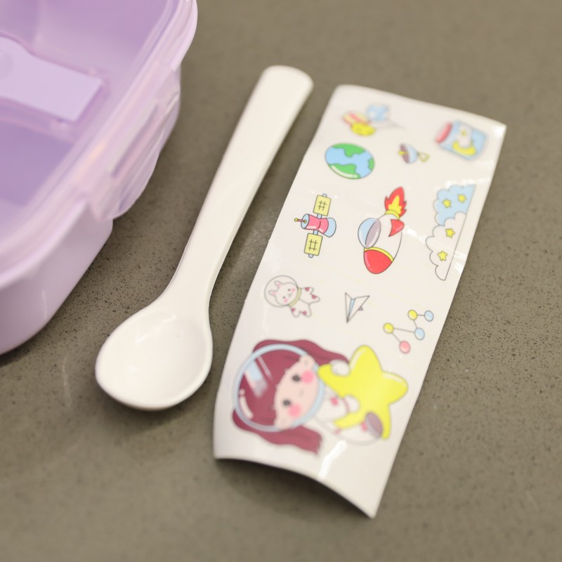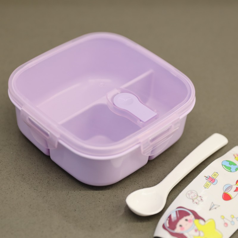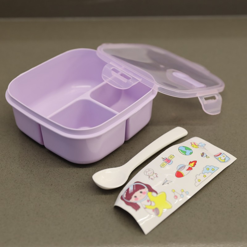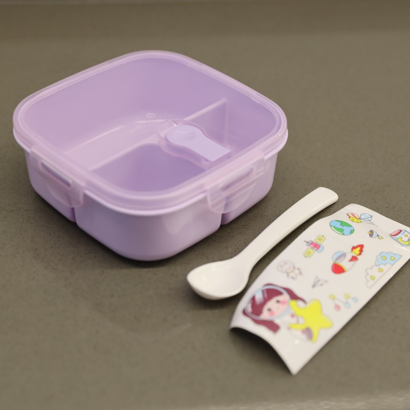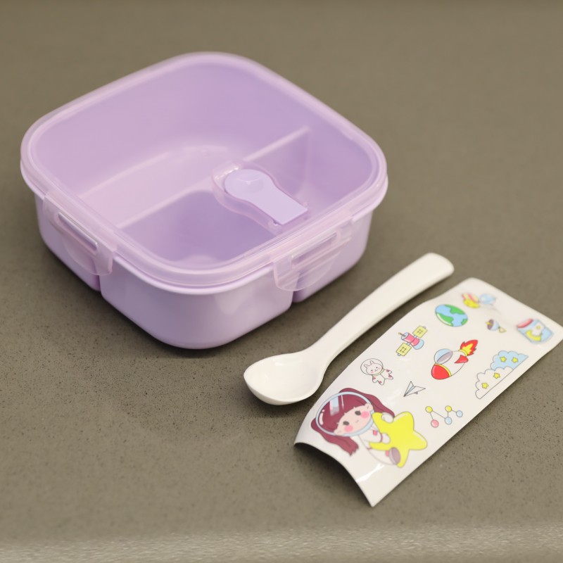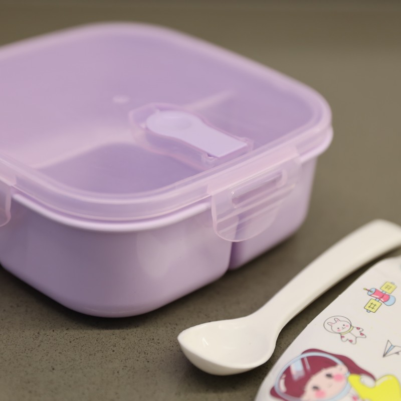 لانش بوكس بلاستيك مع ملعقة - تصميم مربع - حجم 14.5*14.5 سم - لون بنفسجي