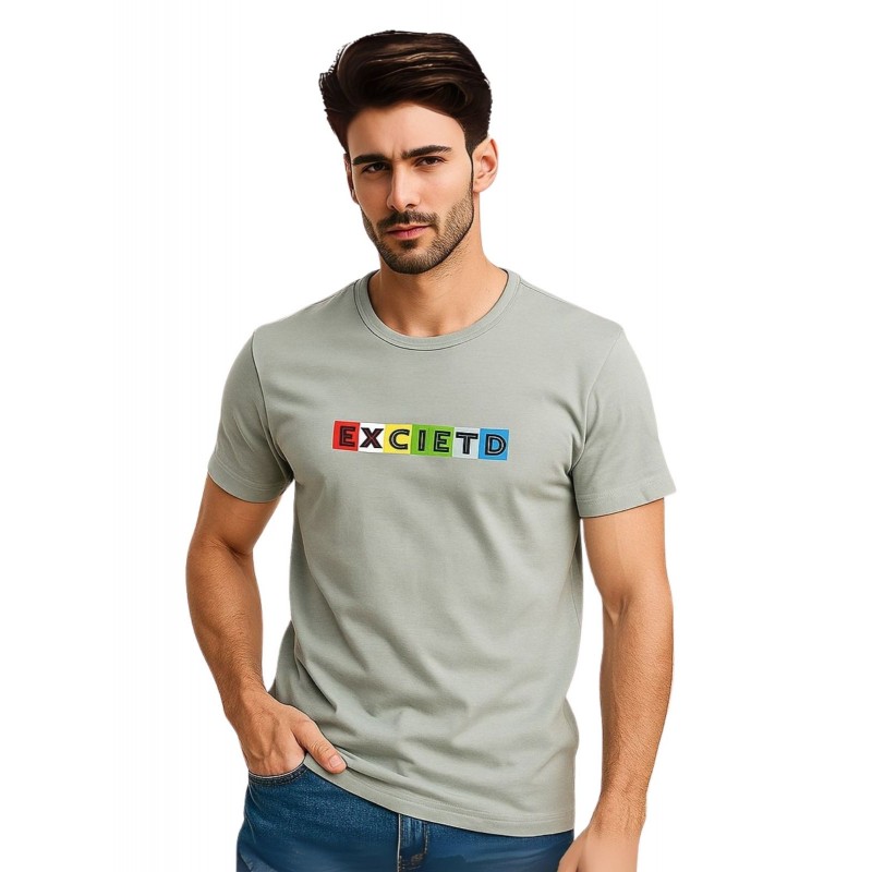 تيشيرت بأكمام قصيرة للشباب لون سكني