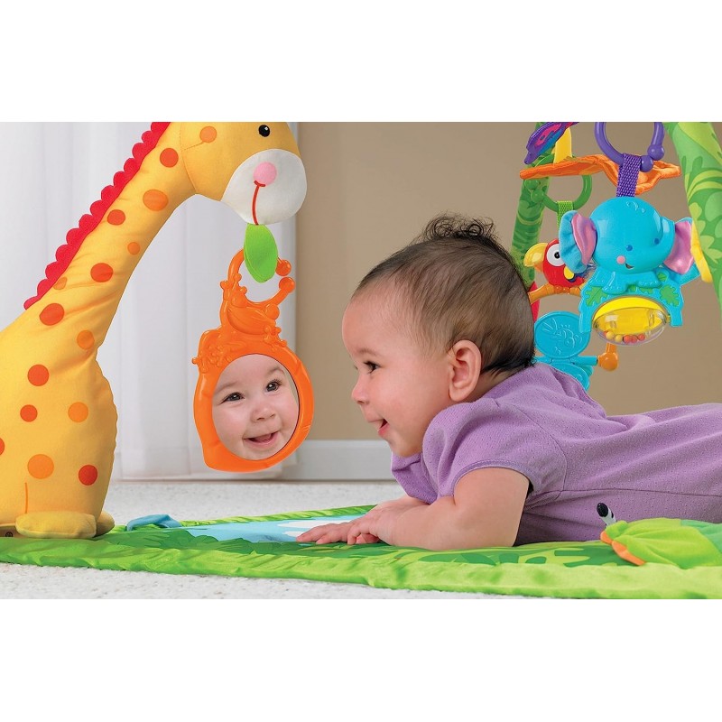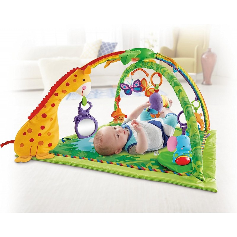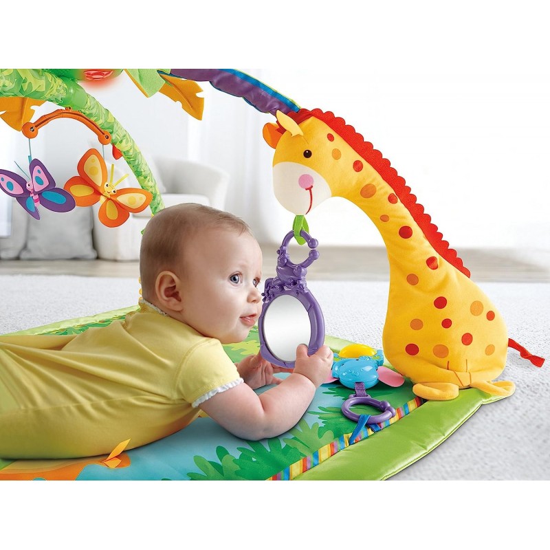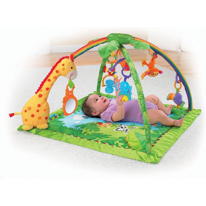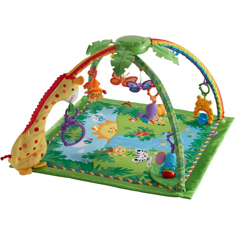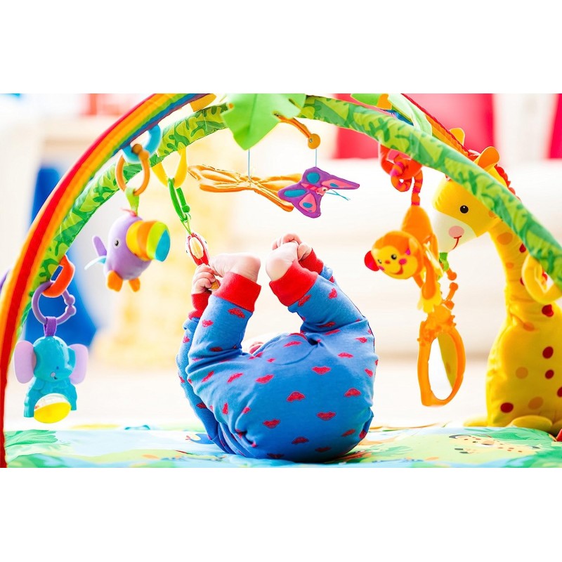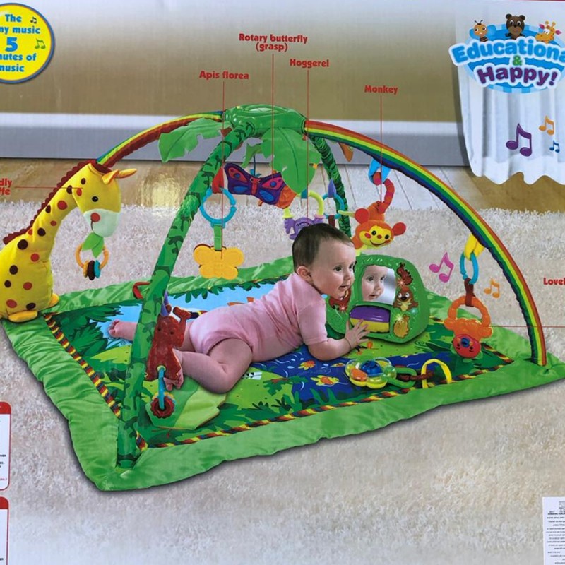 فرشة العاب مع طوقين العاب للأطفال من عمر يوم. المقاس: 101*101 سم مع جهاز يشبه التلفزيون وجهاز موسيقى. مطابقة لمعايير الأمن والسلامة.