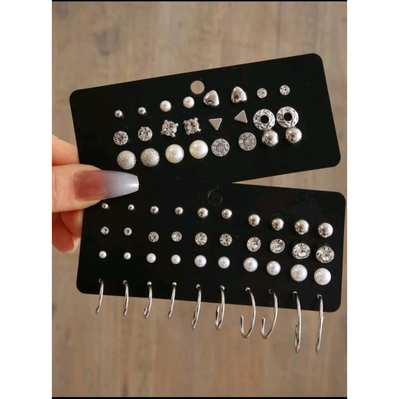 مجموعة من الحلوق الفضية منها الكبيرة بشكل دائري ومنها الصغيرة مكونة من 32 حلق