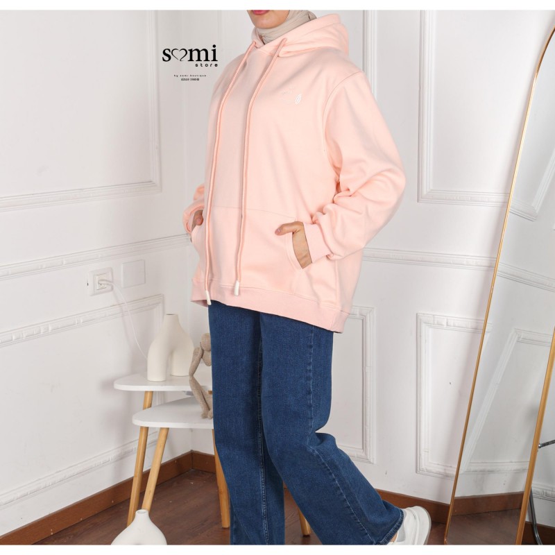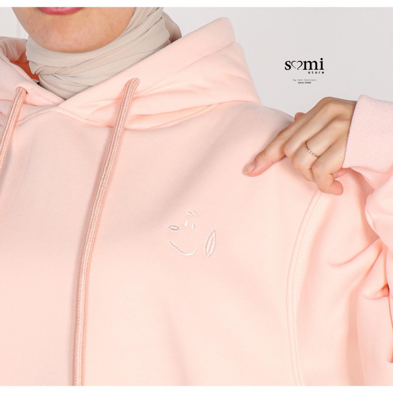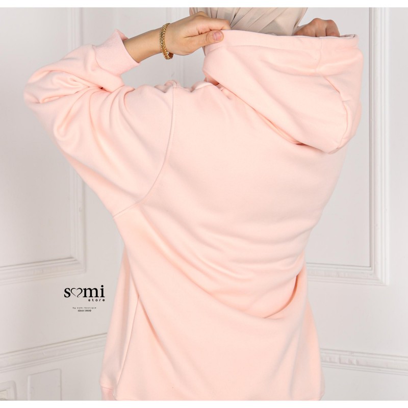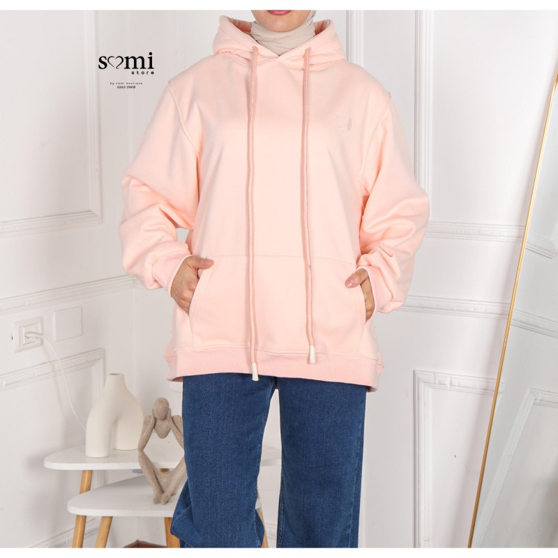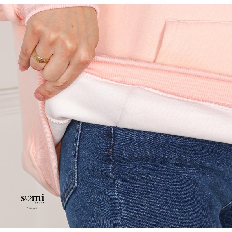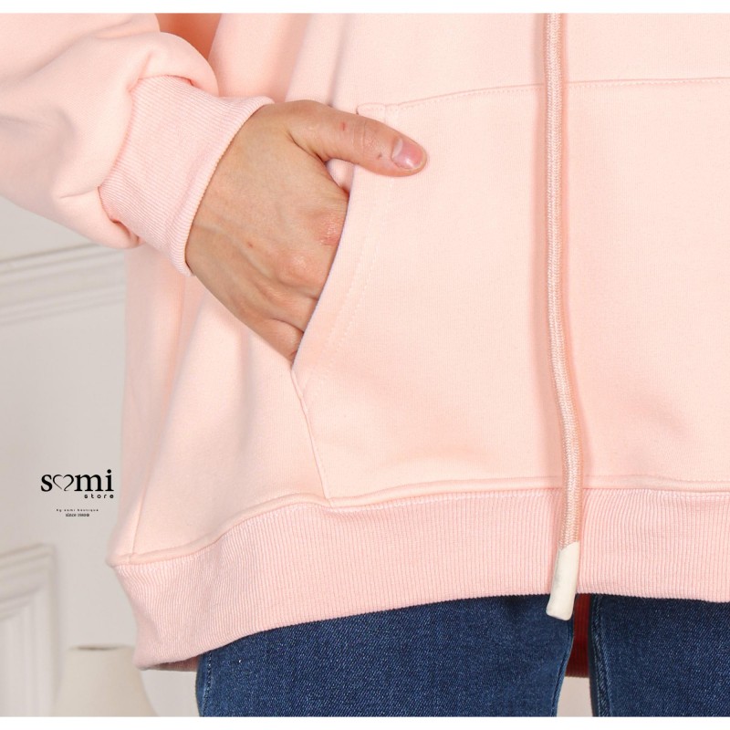 بلوزة شتوية أنيقة بلون زهري ناعم تضيف لمسة أنوثة ودفء لإطلالتك اليومية. تصميم عملي بقبعة (هودي) وجيب أمامي، بقصة مريحة تناسب اللبس الكاجوال والشتوي بكل أناقة.