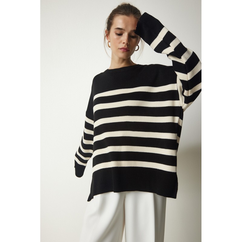 بلوزة شتوية باللون الاسود مخططة بالابيض