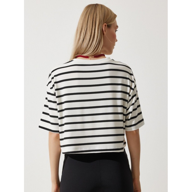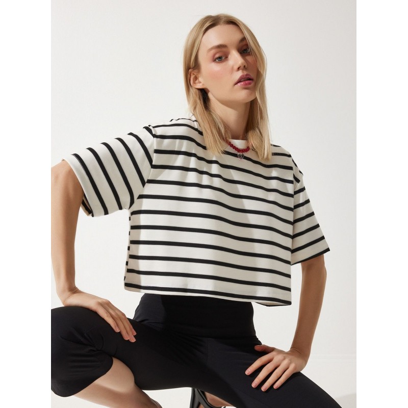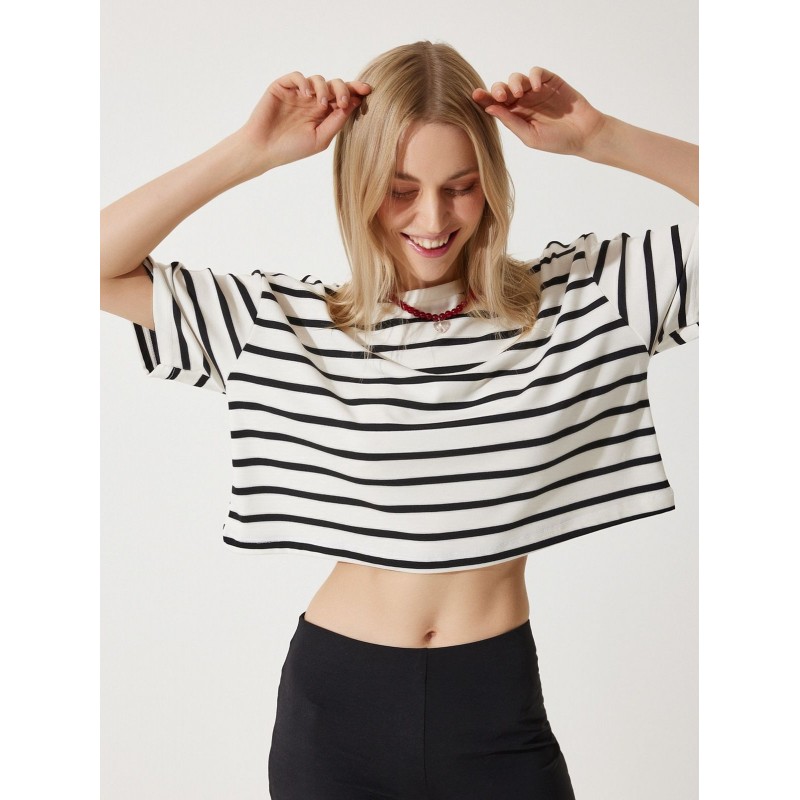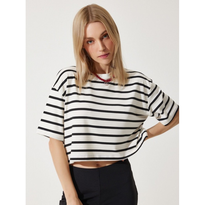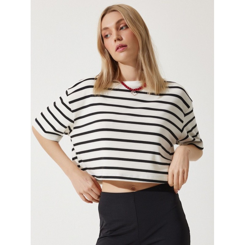 بلوزة ستاتي مخطط أبيض وأسود