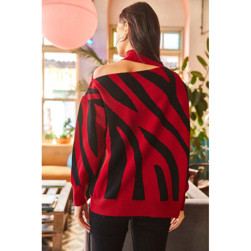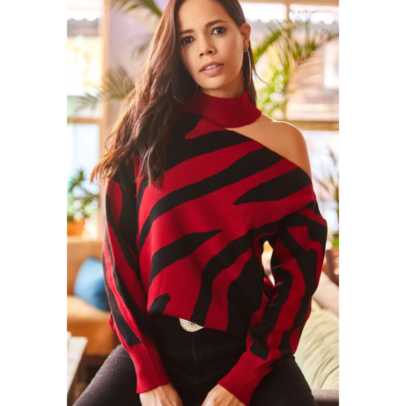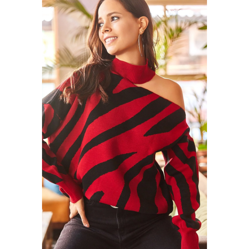 بلوزة ستاتي شتوي أسود وأحمر