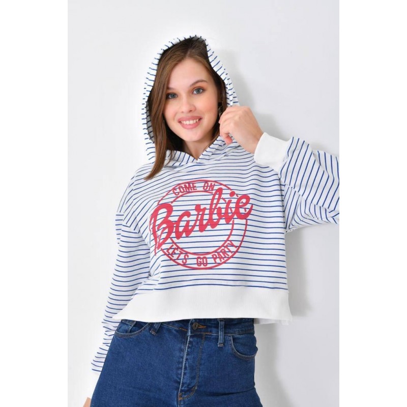 ✅ بلوزة خريفية مع طاقية مخططة لون أزرق.