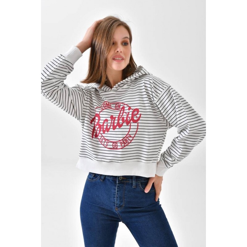 ✅ بلوزة خريفية مع طاقية مخططة لون أسود.
