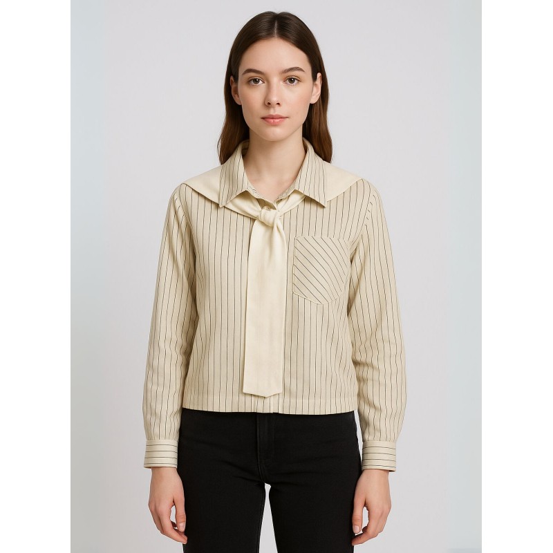 أضيفي لمسة من الرقي والأنوثة إلى إطلالتك مع هذا القميص البناتي الأنيق باللون البيج المخطط. يتميز بتصميمه العصري مع اللفحة المرفقة التي تضفي جمالًا إضافيًا وتمنحك مظهرًا مميزًا يناسب الإطلالات اليومية أو الرسمية.