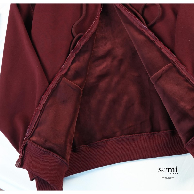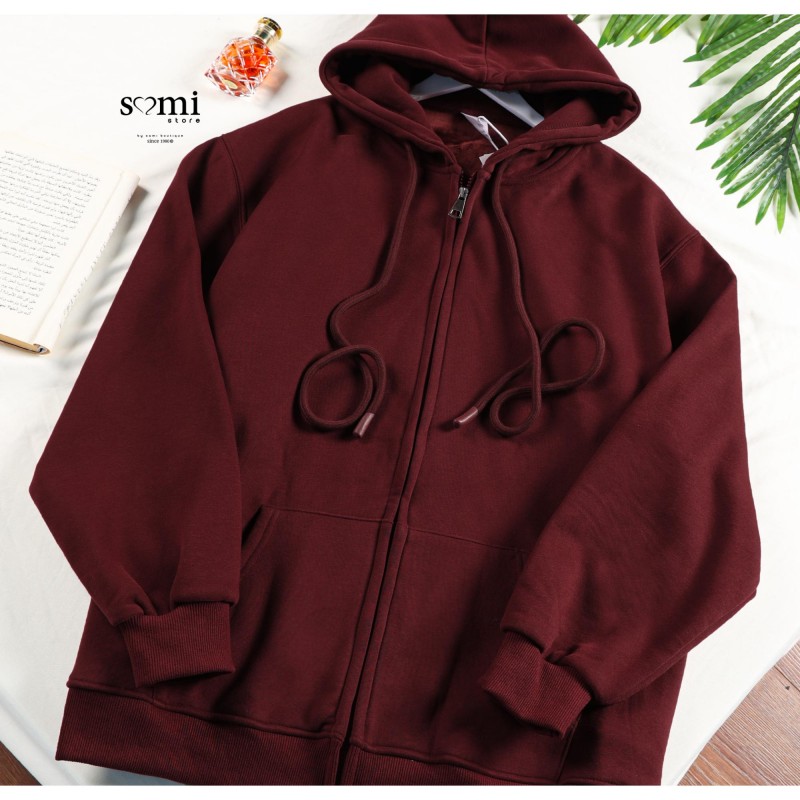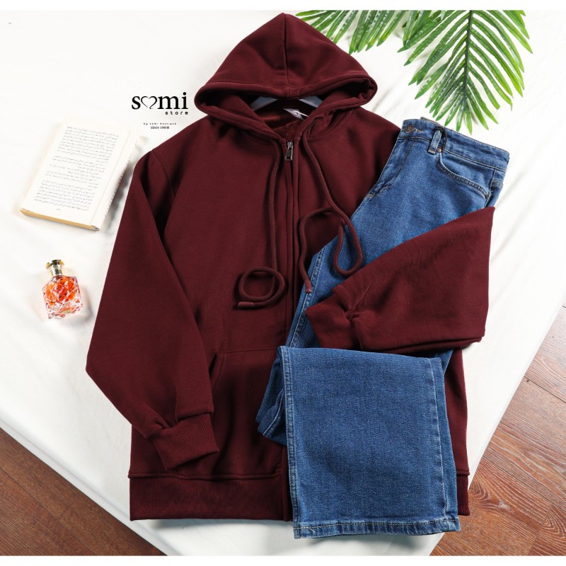 جاكيت شتوي أنيق بلون خمري غني يضيف لمسة فخامة ودفء لإطلالتك اليومية. تصميم عملي بسحاب أمامي وقبعة (هودي) يجمع بين الراحة والأناقة، مناسب للأجواء الباردة واللبس اليومي بكل سهولة.