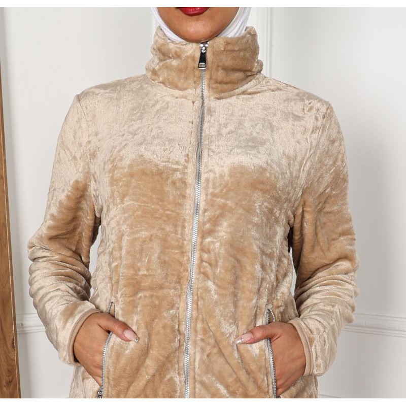 ✅ التصميم: جاكيت فرو مزود بسحاب أمامي، تصميم بسيط يناسب مختلف الإطلالات اليومية.