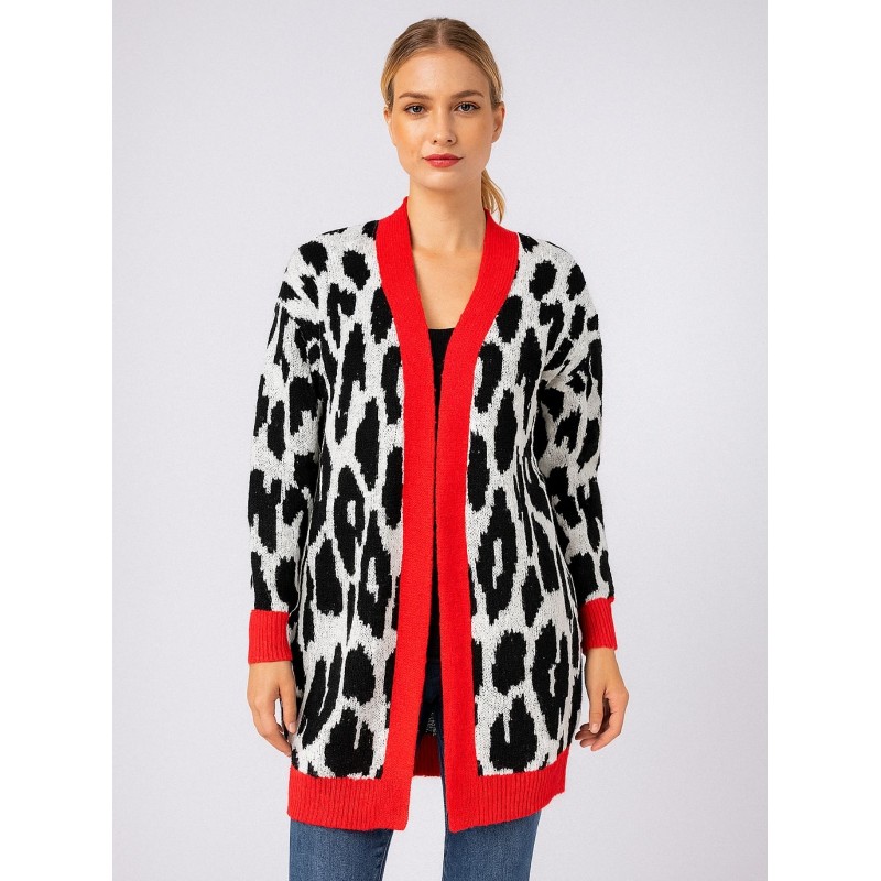 جاكيت صوف للنساء لون أبيض وأسود و أحمر
