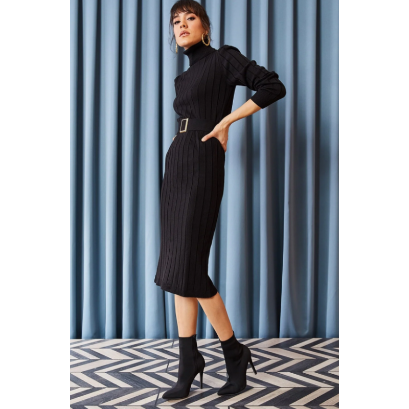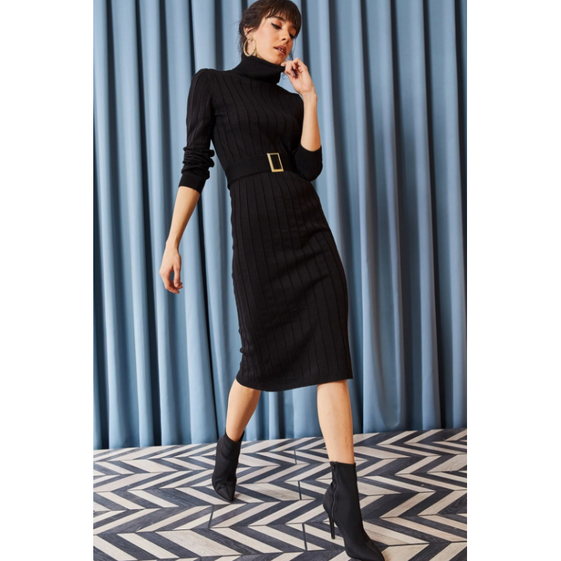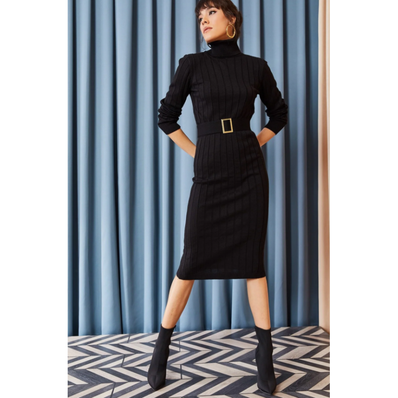فستان ستاتي شتوي أسود